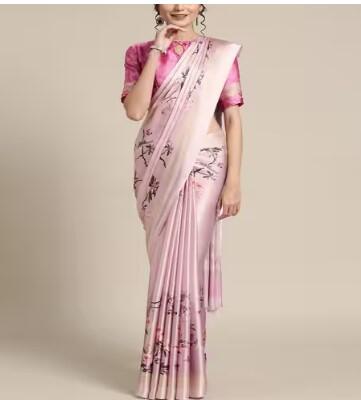 Saree Mall Light Pink Casual Satin Crepe Digital Print Saree