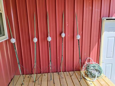 Five lightning rods with glass balls and original braided copper ground wire, taken off a house that...