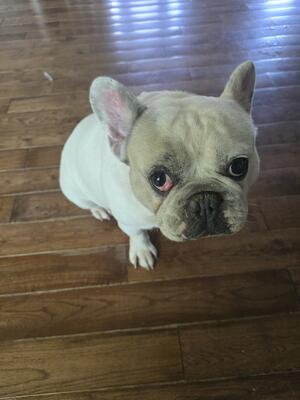 6 weeks old. Half French Bulldog, Half Boston/Frenchie mix. Super sweet and ready to go to good home...