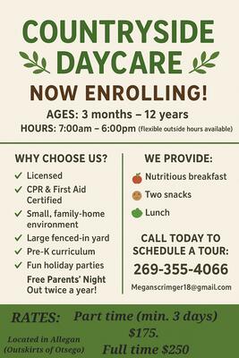Countryside Daycare now enrolling!