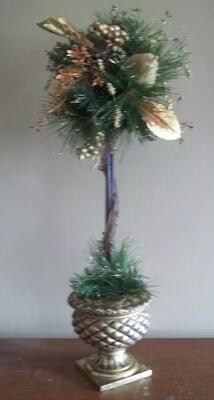 2 ft tall Gold sugared Pear and Pine TOPIARY BALL in planter LARGE SIZE. originally almost a hundre...