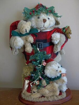 not sure of brand. Quailty on wood stand. comparable to boyds bears. approx 2 ft tall. smoke free. ...