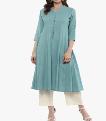 Flared Kurta with Band Collar