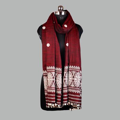 Burgundy Bloom Eri Silk Shawl Eri Work