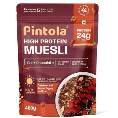 Taste meets fitness with Pintola High Protein Dark Chocolate Muesli 400 gm—available at Aap Ka Baz...