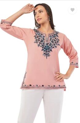 Kronia Pink Embroidered Cotton Kurta – Stylish & Comfy