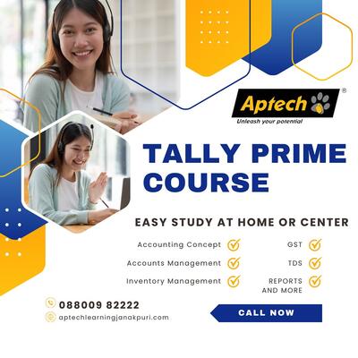 Join Aptech Learning Janakpuri’s Tally Prime course and master accounts, GST, TDS, inventory, and ...
