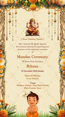 Create your baby’s mundan invitation card with photo online free. Easy to design, customize, and s...