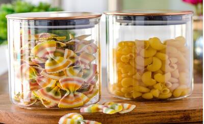 ellementry Set Of 4 Transparent Solid Glass Jars With Wooden Lid