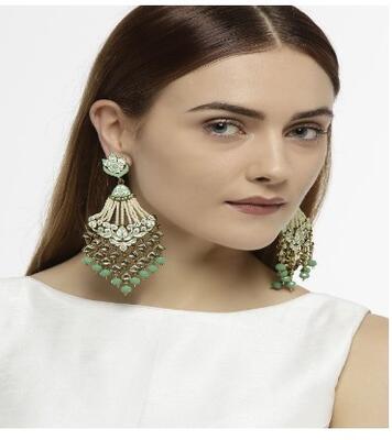 Product Code: 6632838 Off-white gold-plated classic chandbalis, has artificial stones and beads ...