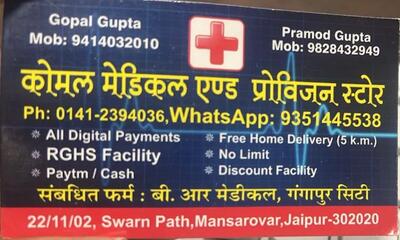 Looking for a trusted pharmacy near you? Komal Medical Store in Mansarovar is your go-to destination...
