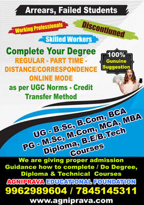 Golden opportunity for Employees and Dropouts complete any Degree from UGC DEB AICTE recognized universities Call 7845145311