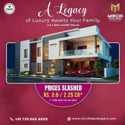 Mirchi Developers Venice City’s 3BHK, 4BHK Luxury villas epitomize opulence and exclusivity, off...