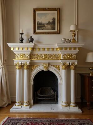 Elevate your home's elegance instantly with this breathtaking Round Columns Wooden Baroque Fireplace...