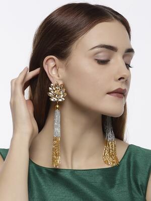 Zaveri Pearls Gold-PlatedCrescent Shaped Drop Earrings