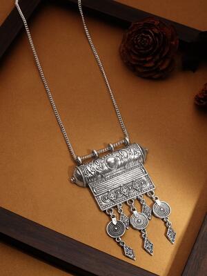 Rubans Oxidized Silver Toned Hand Crafted Necklace