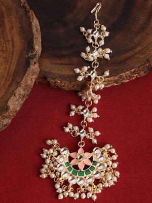 AccessHer Gold-Plated & Green Meenakari Kundan Maang Tika