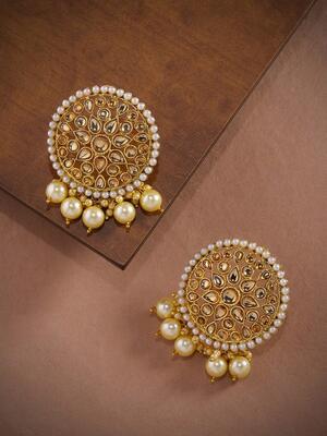 Zaveri Pearls Gold-Plated Circular Drop Earrings