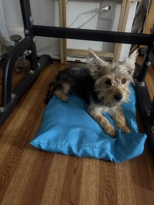 Looking to rehome 6month male Yorkie he is friendly playful and cuddly. Gets along with kids and oth...