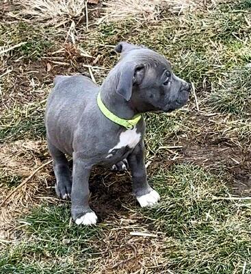 I got a 1 year old male bully he is chocolate Tri he has a lot of heavy hits in his pedigree he is ...