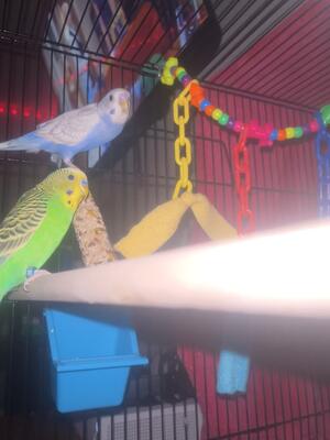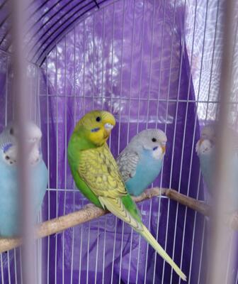 Looking for a new home for our parakeets. There are 5 total: one beautiful blue and four vibrant gre...
