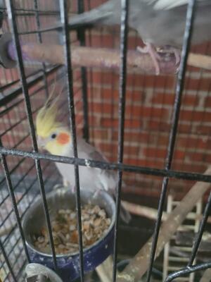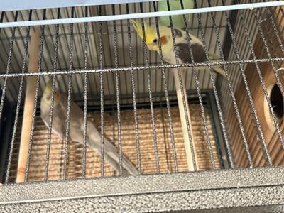 Mating pair of white face cockatiels with cage and all accessories including nesting box I am locat...