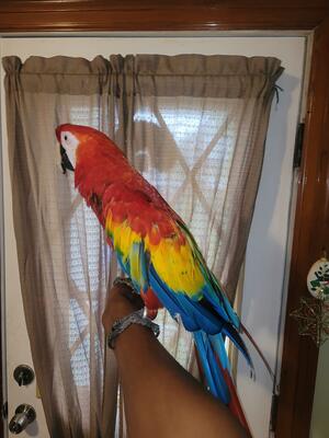 Extremely tame Scarlett macaw for sale! Young female, loves to cuddle, dance, talk!!! She's a pe...