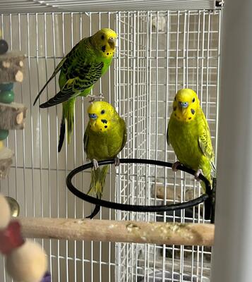 Two young parakeet's not even a year old, they go as a pair, loves to play and sing, very friendly!...