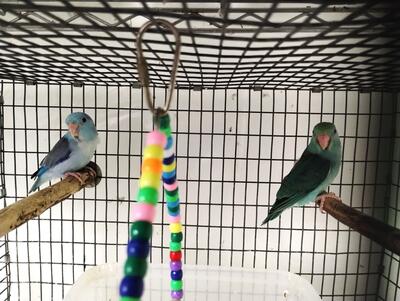 A young pair of Parrotlets, Green males are 16 months old. Turquoise females are 14 months old. The...