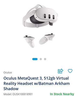 Hi i have a brand new oculus 3 512gb with Batman Arkham Shadow looking to trade or do some cash with...