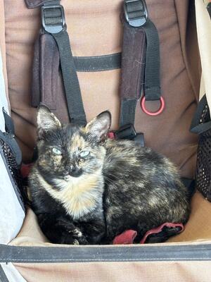 Young female short haired tortoise shell cat, born Mother’s Day 2025. No vaccines or medicatio...