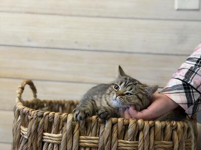 Beautiful round faced British shorthair girl. Very cuddly and affectionate kitten! Adores children a...
