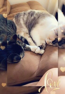 2 female cats looking for new home. They are a bonded pair. White cat is approx 7 years old and dark...