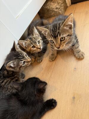 We have 4 adorable kittens 2 months old need to be rehomed 2 on the left are female on the right mal...