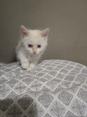 All white with a gray tail. Super sweet. 12 weeks old (5/9/25)...