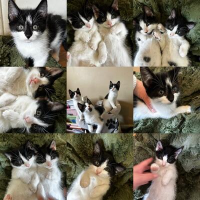 Tuxedo kittens! 50$ for the baby kittens and 25$ for the teenager 6 kittens total and 2 teenager...