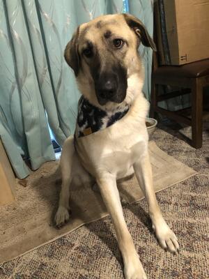 Two large dogs. Wendell (the white and grey spotted dog 2 ys) and Huxley (the GSD looking dog 3ys). ...