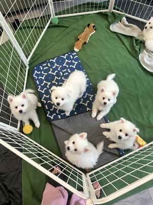 11 week puppy ready to go to a new home! American Eskimo dad and pomemo mom. Very friendly, fluffy, ...