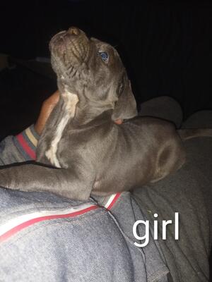 3 month old sweet girl. Comes from excellent lines. Already weighing 38 pounds. Very loving and affe...