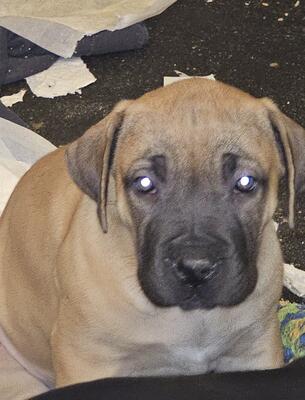 Beautiful, healthy Boerboel puppy looking for her forever home Fawn color with black greyish mask...