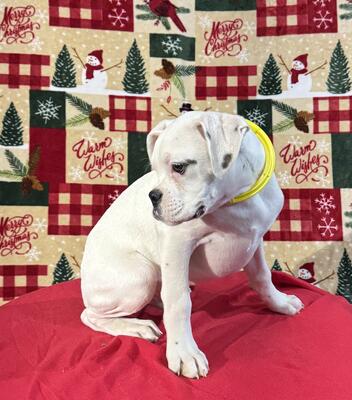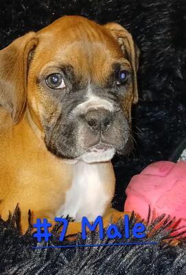 Banks is a boxer puppy born August 5, 2025. Tail docked and declaws. Already weaned, 1st shots, reg...