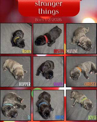 Blue(fawn brindle)and Django(blue brindle) puppies are here. Fawns and brindles available. They will...