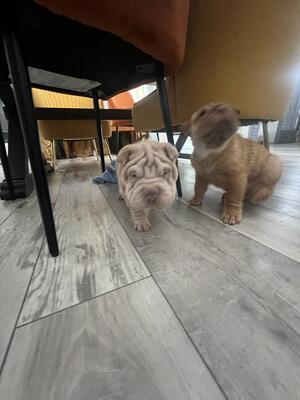 Sharpei, 2 pups, one boy & one girl, AND mother. FOR ALL 3 SHOOT A PRICE. For the mother 1,000 PUPPI...