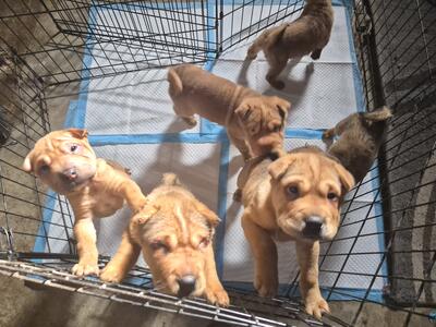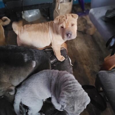 Shar pei puppies ready for their forever home! Contact for more info and pics! 2 males : grey ...