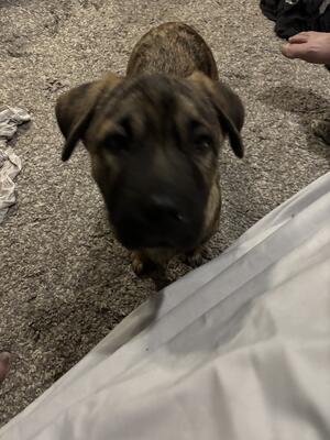 17 week old female Shar-Pei/Husky cross. Brindle colour. Shy at first, but very friendly and playf...