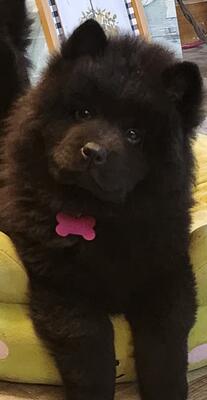 This is a female chow puppy. She is a smooth haired chow. She is a mild friendly dog. She should sh...