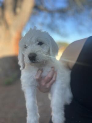 4 month old female labradoodle. Super sweet, doing well with potty training. Shes good with kids and...