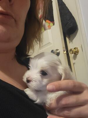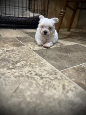 Maltese male pup born Feb. 6, 2025. Up to date on vaccines & dewormings… Will need a rabies vacci...