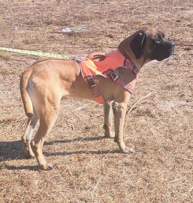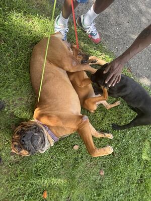 11 month old English Mastiff - housebroken- good with kids - good with medium and large dogs. Not go...