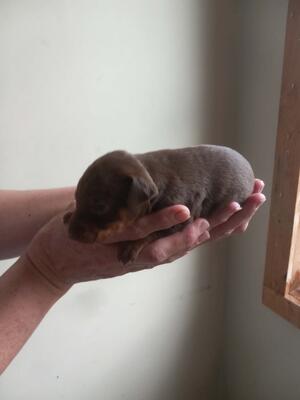 We have four chocolate and tan miniature pinscher puppies ; one boy and three girls. They were born ...
